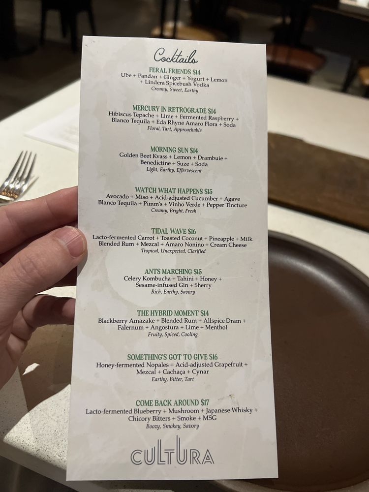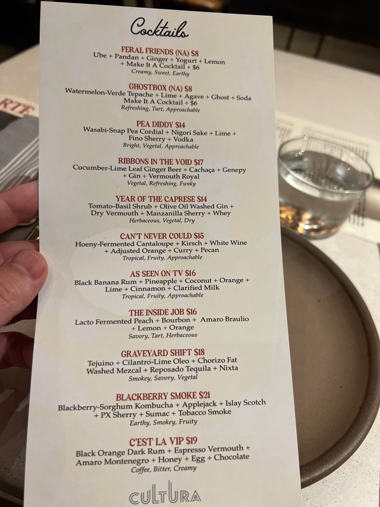 Welcome to Cultura, a vibrant cocktail bar nestled in the heart of Asheville, NC. This New American restaurant effortlessly blends trendiness with a romantic atmosphere, perfect for group outings or intimate dinners. As a culinary haven, Cultura takes pride in its diverse menu, offering everything from house-made breads to innovative dishes like Rutabaga Panna Cotta and Charcuterie Boards.